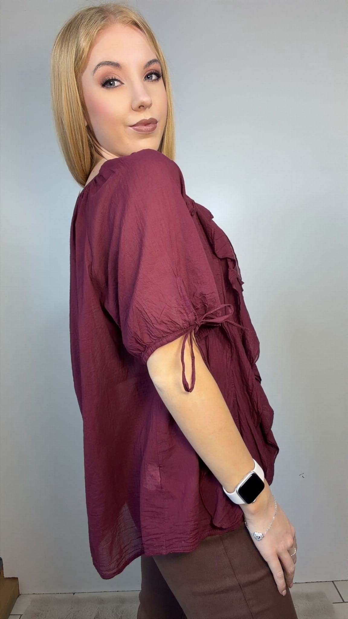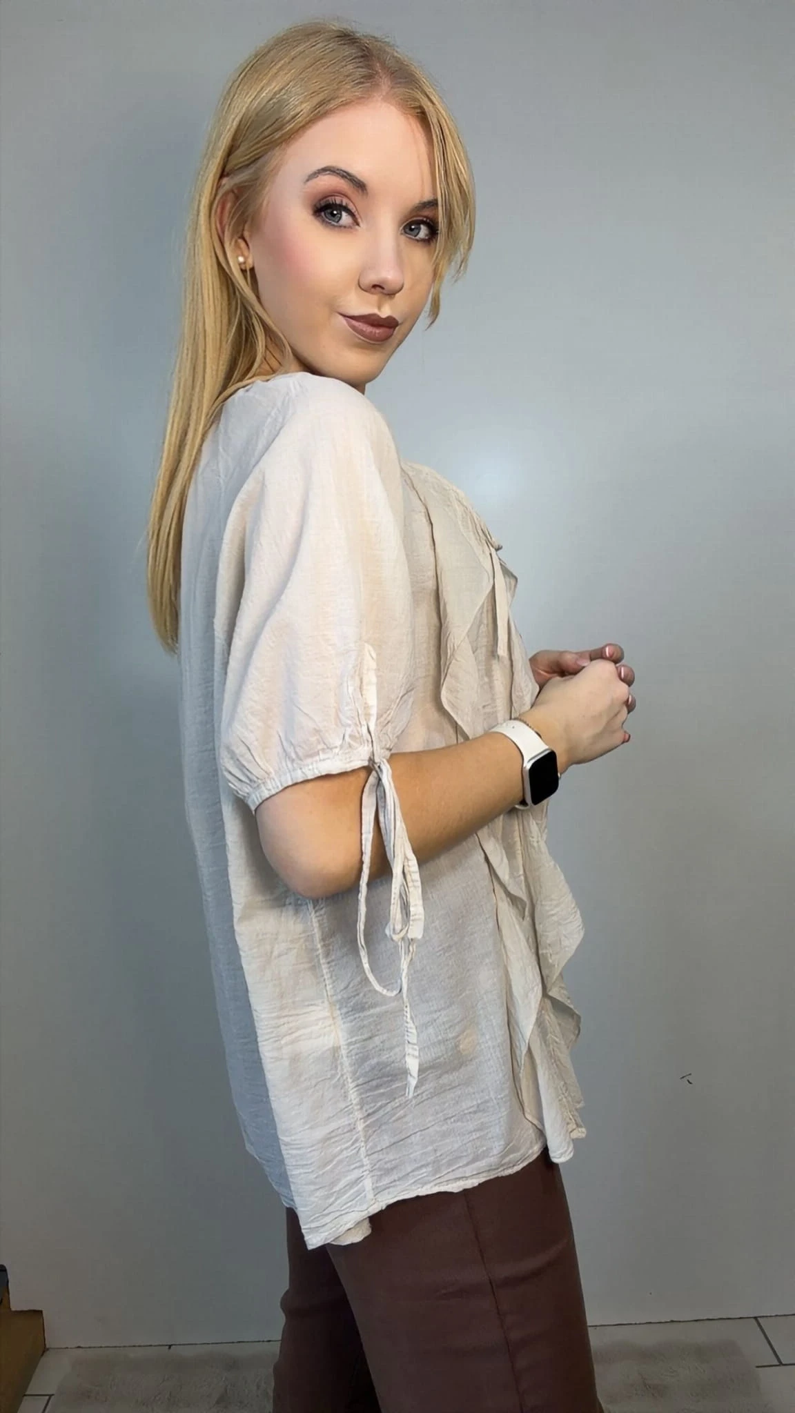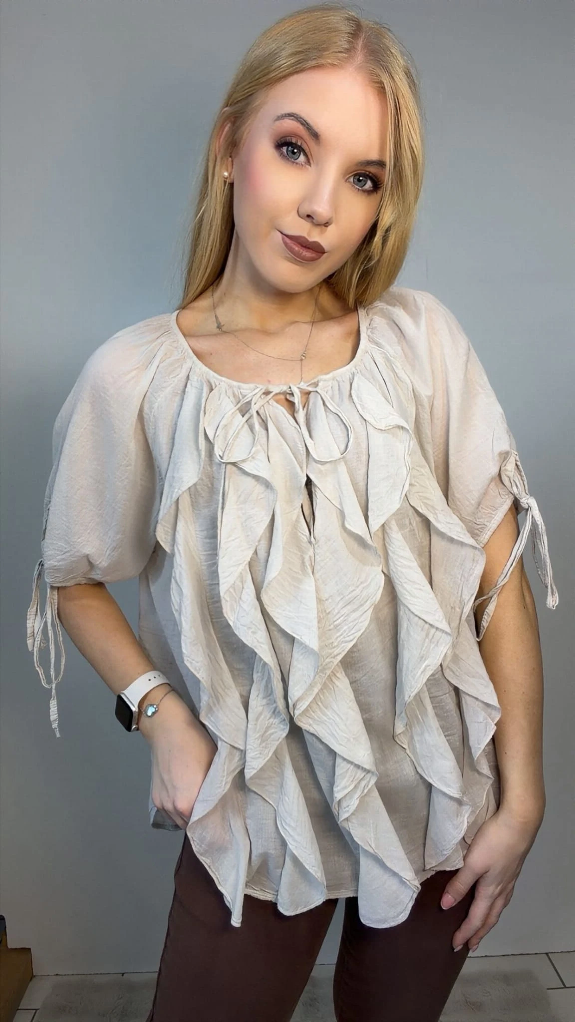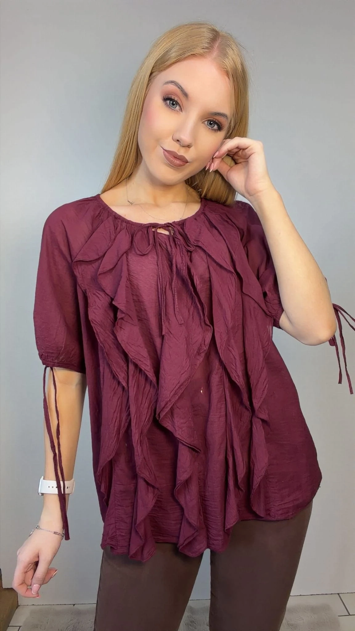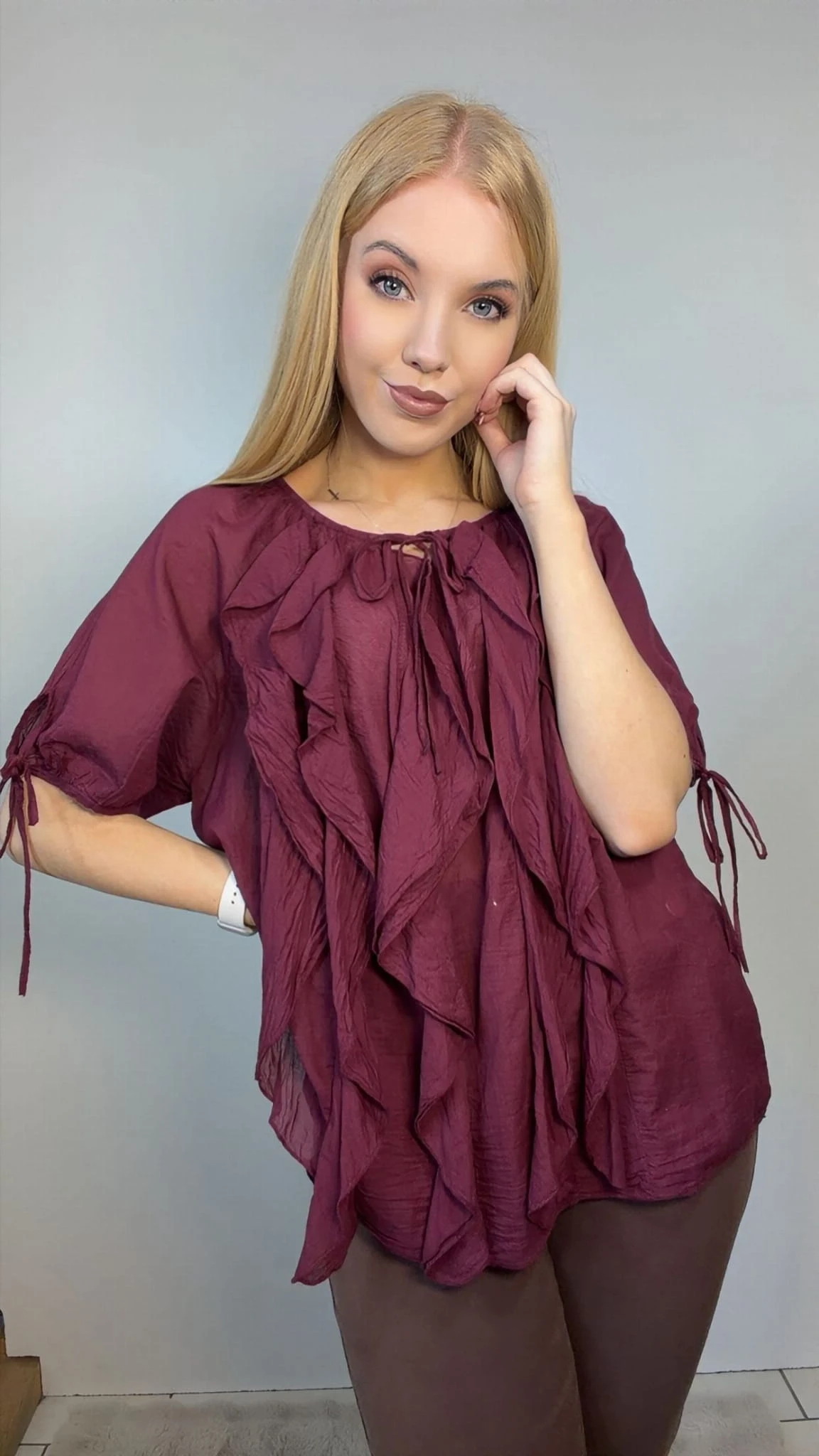Modna bluzka damska wykonana z bawełny, która zachwyca kobiecym fasonem i efektownymi falbanami. Lekki materiał oraz luźniejszy krój zapewniają wygodę noszenia przez cały dzień.
