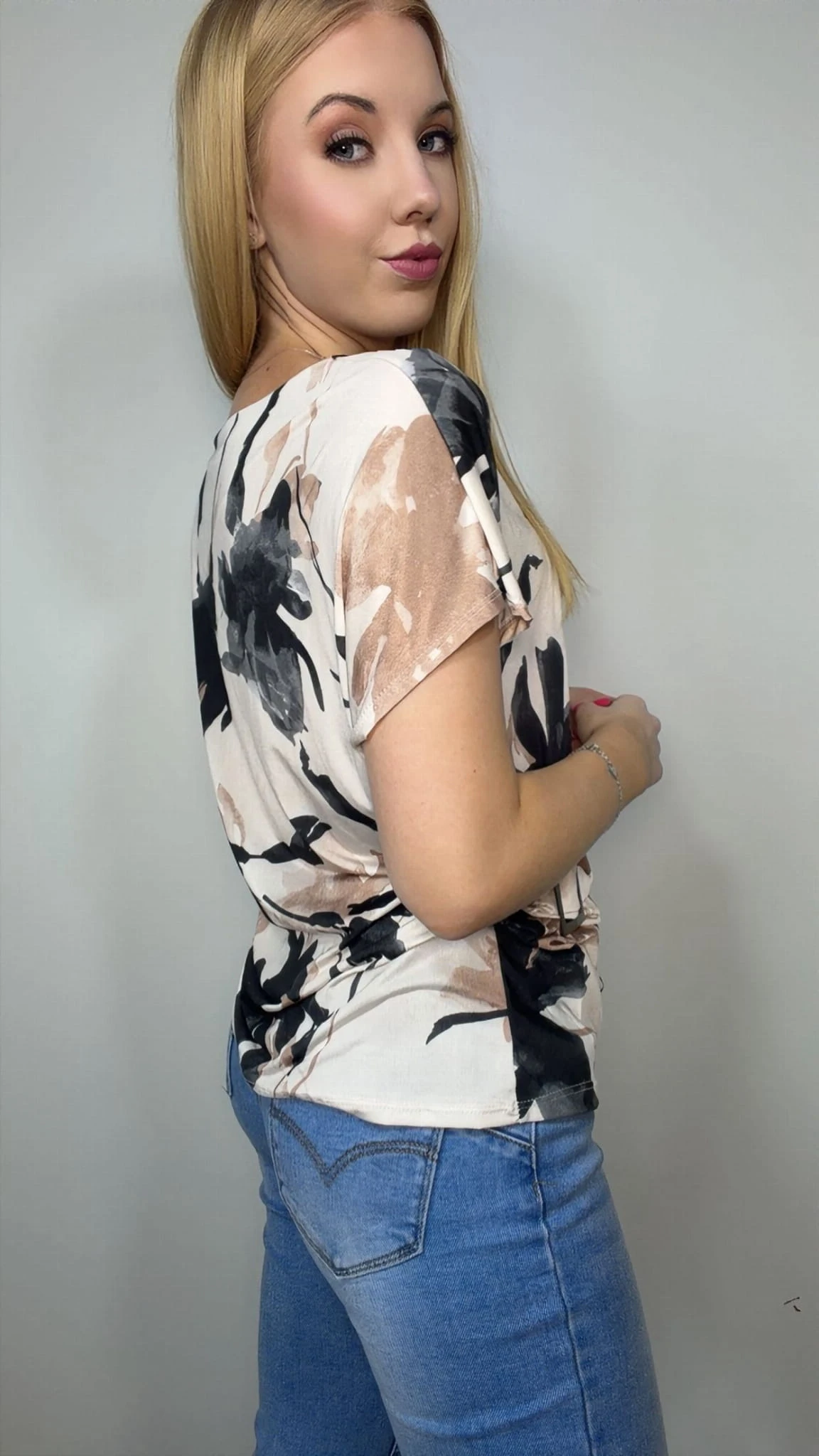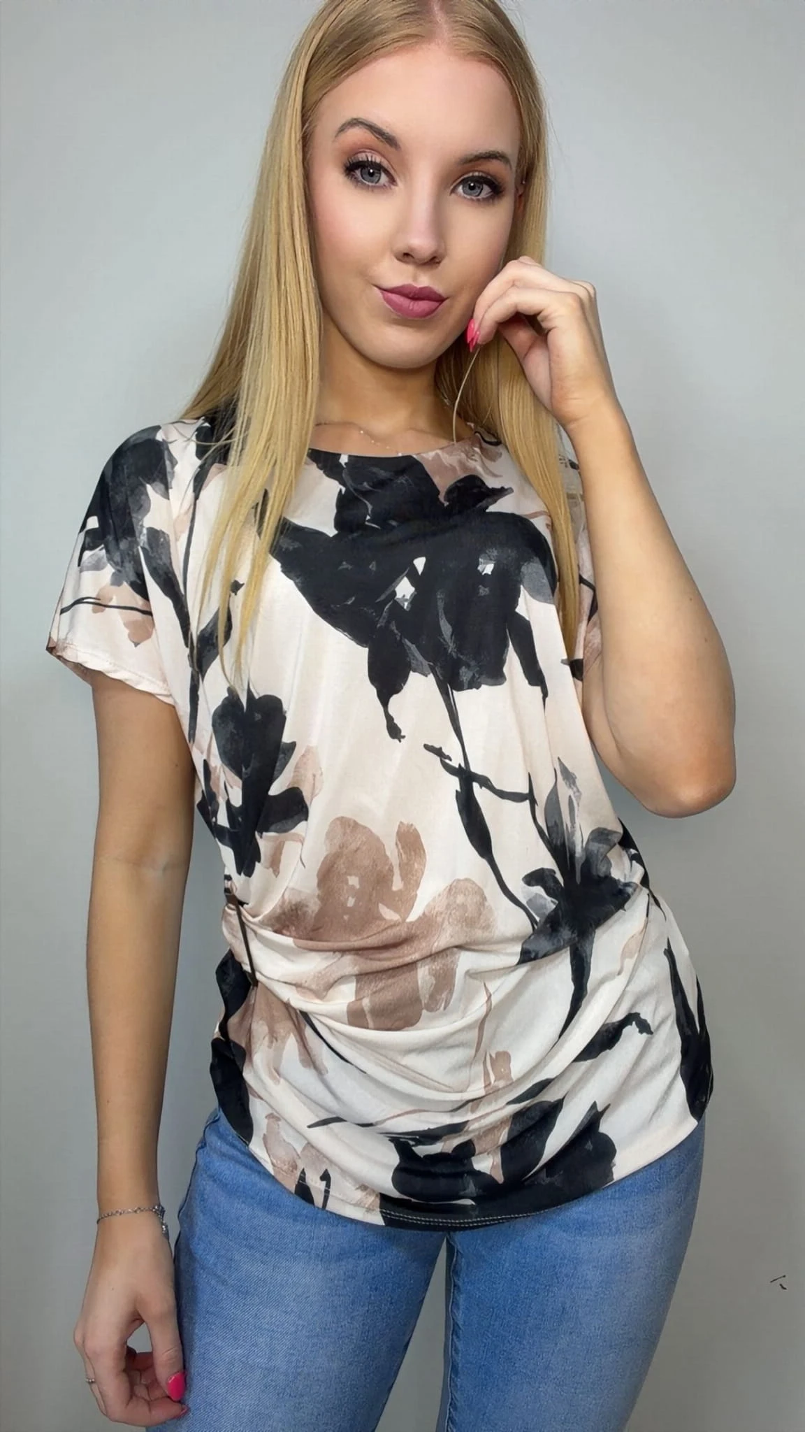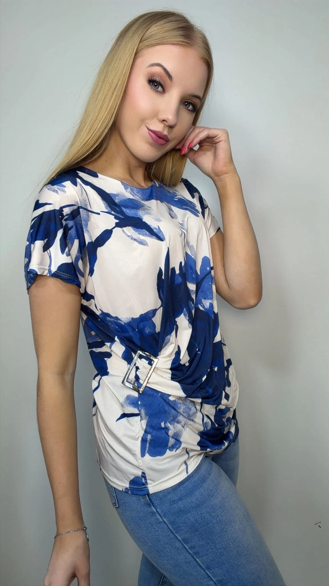 Stylowa bluzka damska z ozdobną klamrą to doskonała propozycja dla kobiet, które lubią modne i wygodne stylizacje. Model wyróżnia się efektownym wzorem oraz dekoracyjną klamrą z boku, która subtelnie marszczy materiał i pięknie podkreśla sylwetkę.