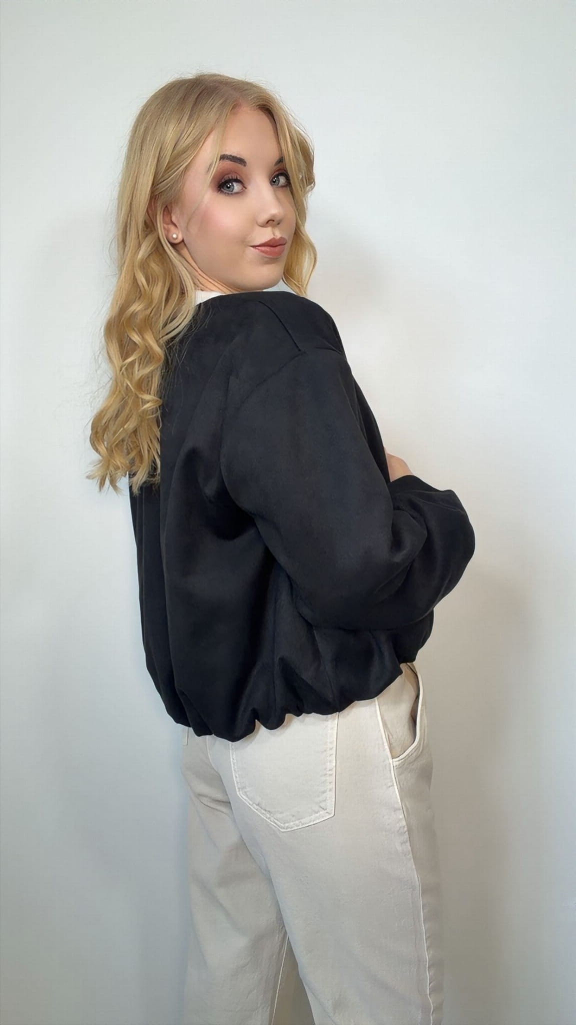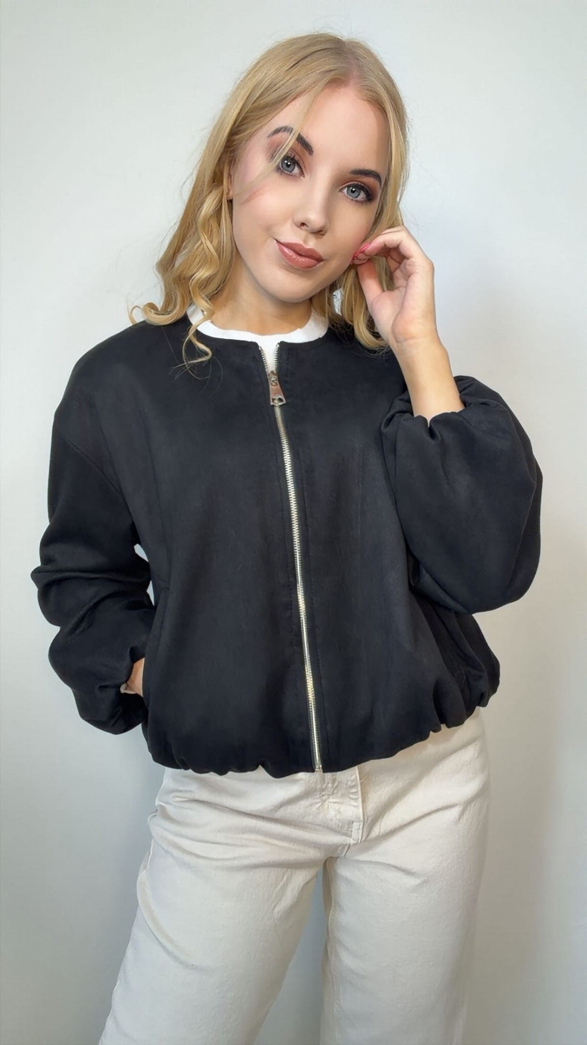 Modna kurtka damska typu bomberka to doskonała propozycja dla kobiet, które cenią styl i wygodę w codziennych stylizacjach. Krótszy, lekko oversize’owy fason sprawia, że kurtka świetnie układa się na sylwetce i pasuje do wielu modnych zestawów.