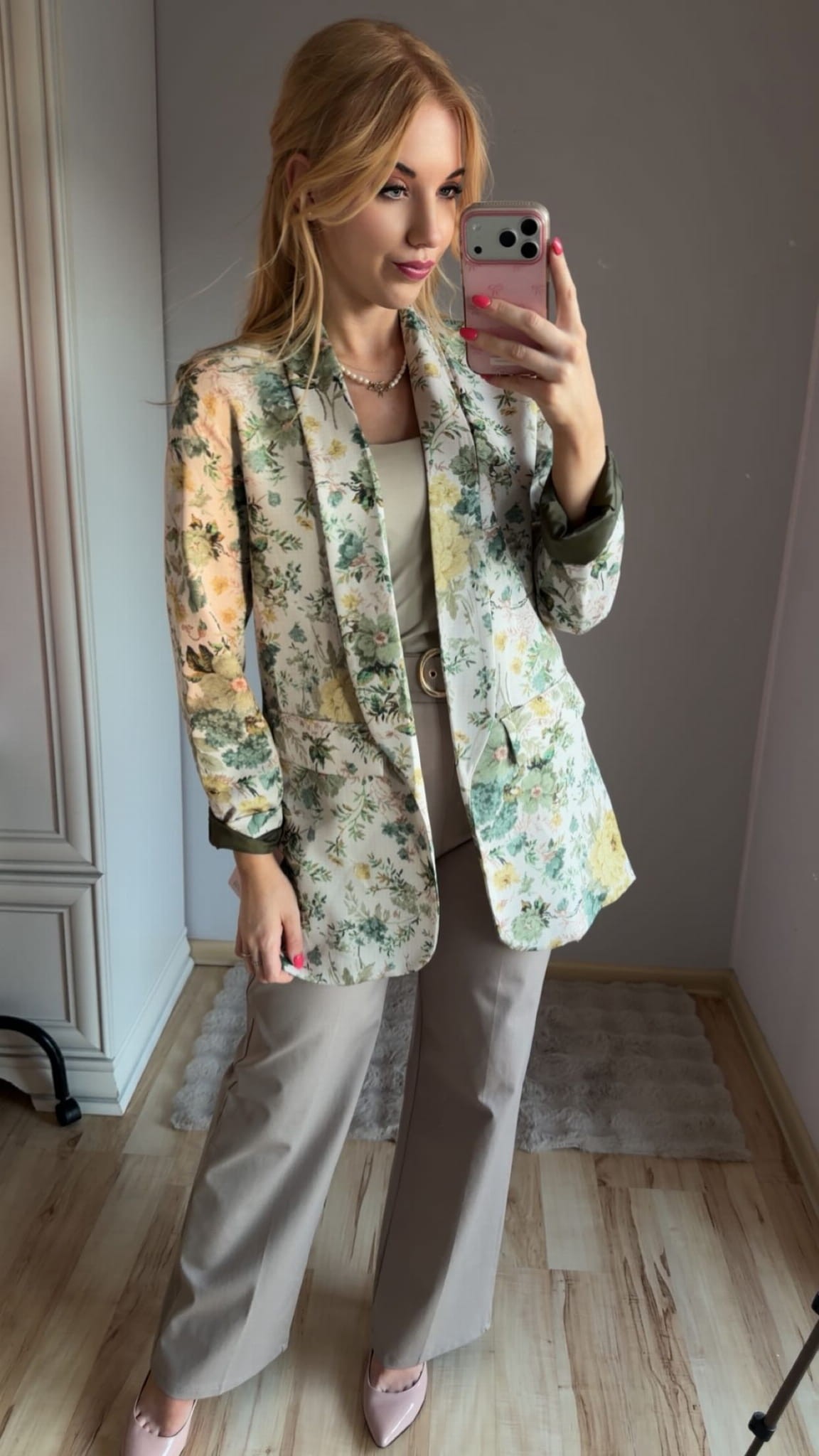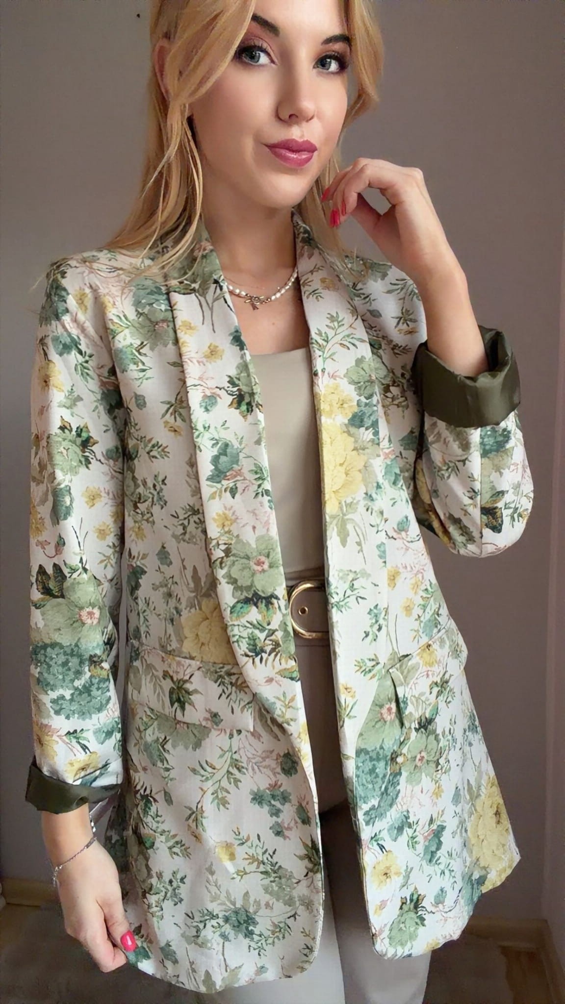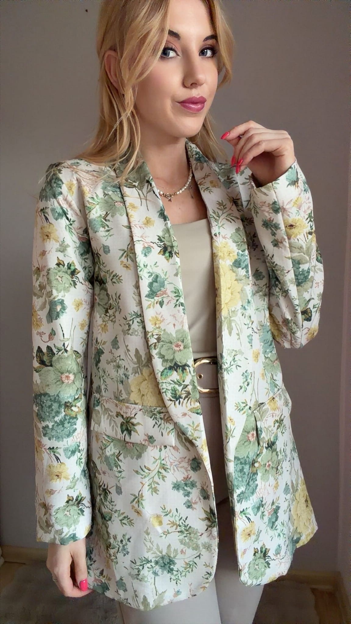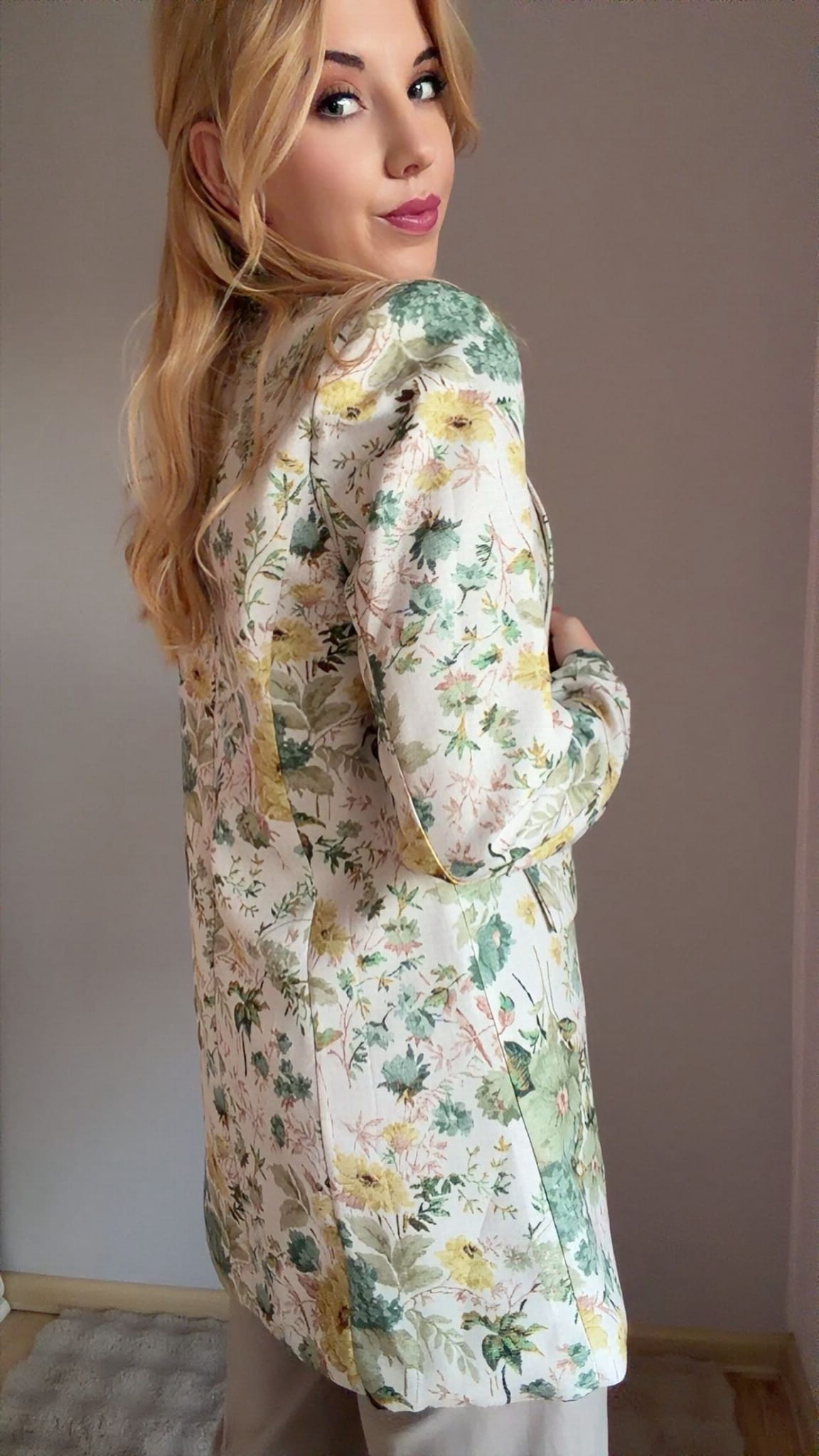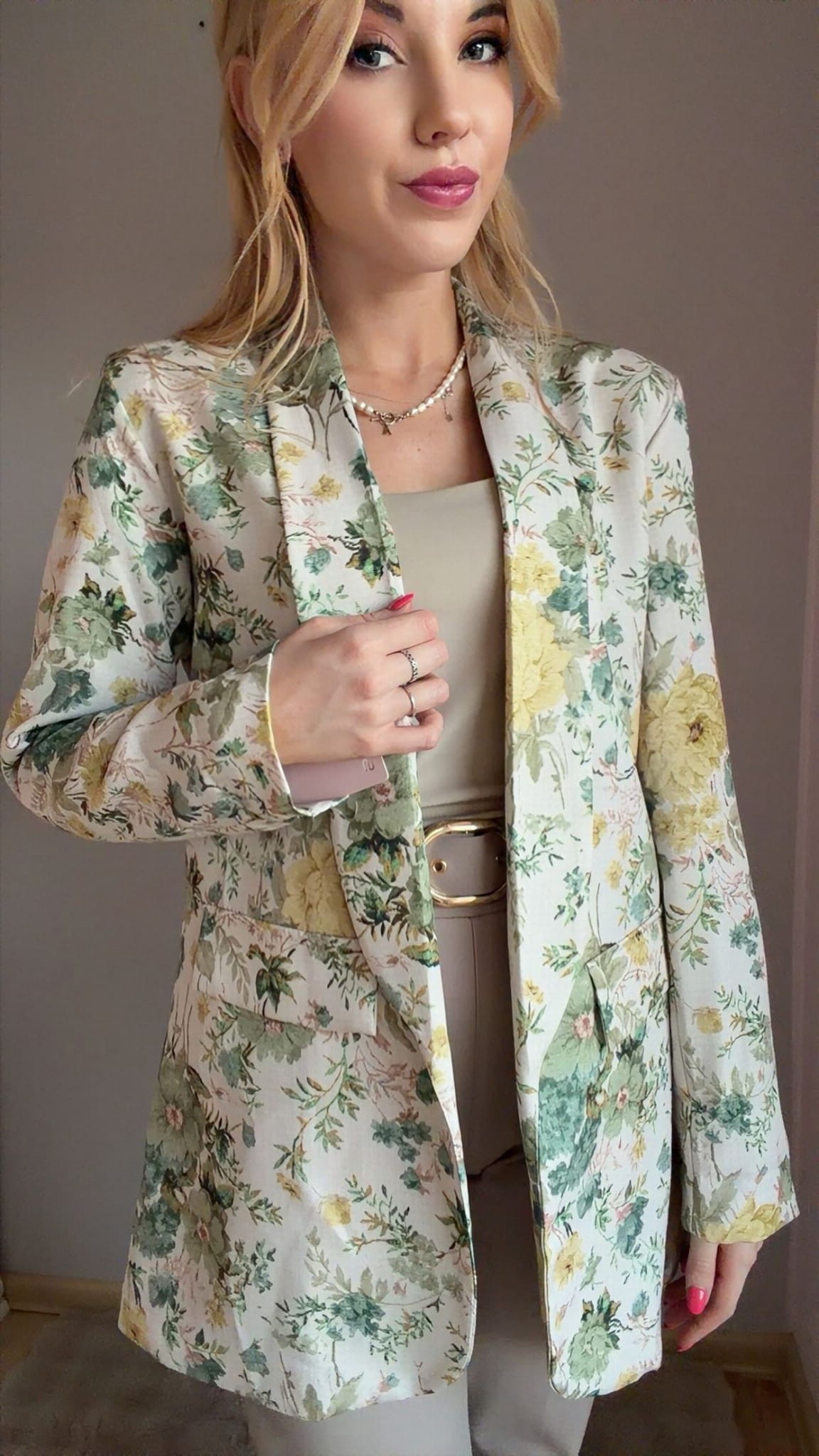 Stylowa marynarka damska w kwiatowy wzór to wyjątkowy element garderoby, który łączy elegancję z modnym, kobiecym designem. Kolorowy print floral nadaje stylizacji świeżości i oryginalnego charakteru, dzięki czemu marynarka świetnie wyróżnia się w każdej stylizacji.