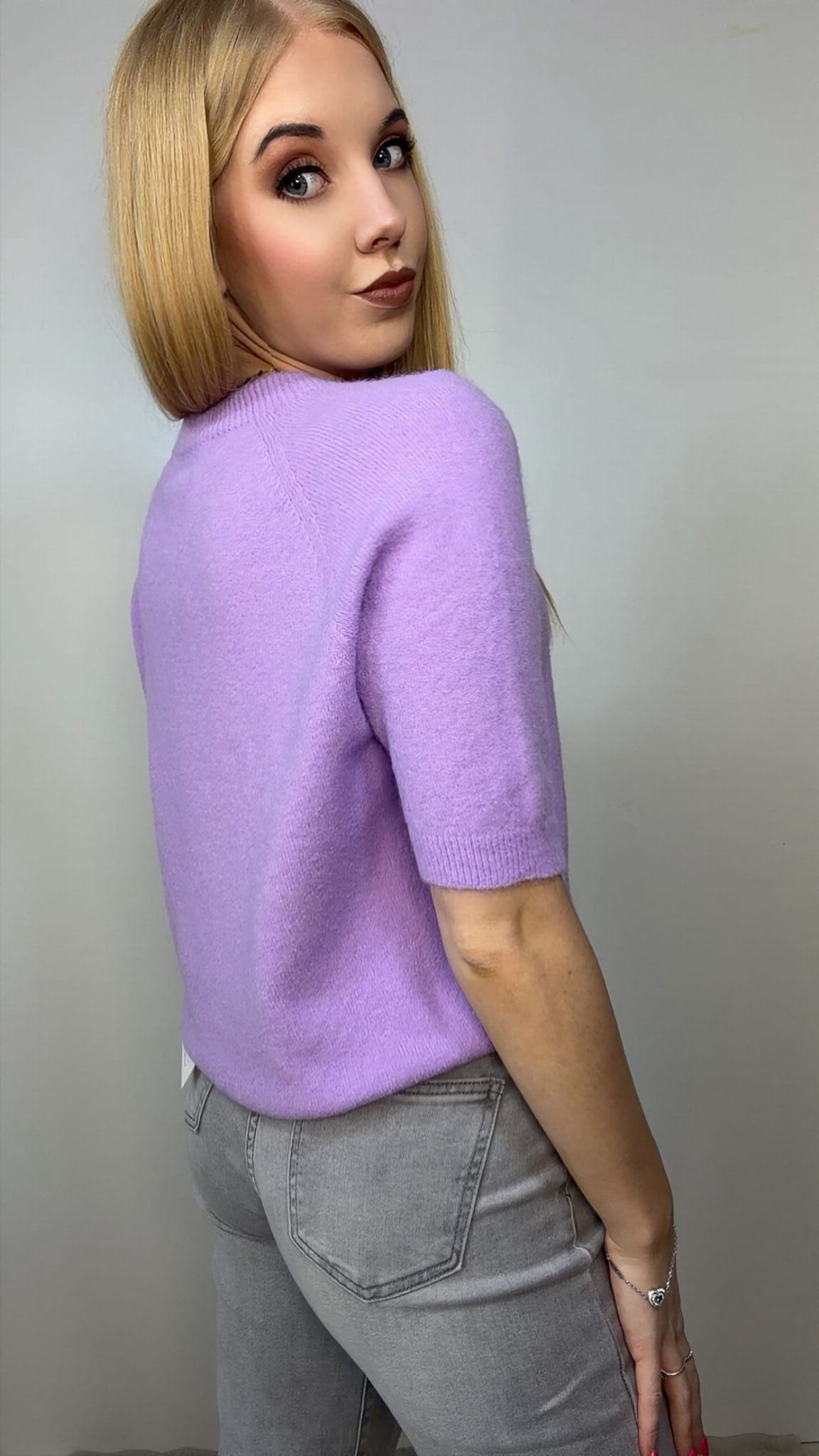 Stylowy sweter damski z krótkim rękawem to doskonała propozycja dla kobiet ceniących wygodę i ponadczasową elegancję. Model wykonany z bardzo przyjemnej w dotyku dzianiny, która zapewnia komfort noszenia przez cały dzień.