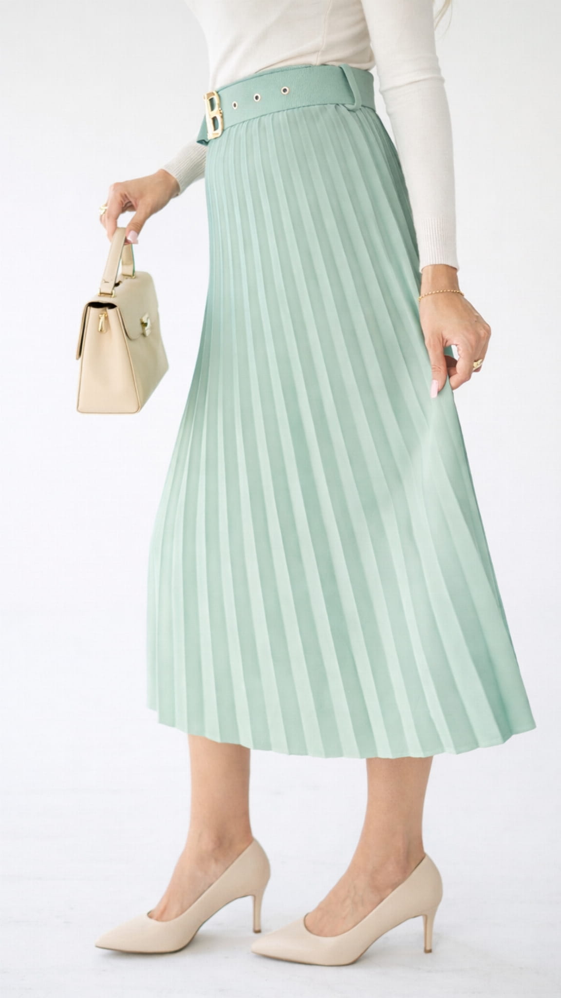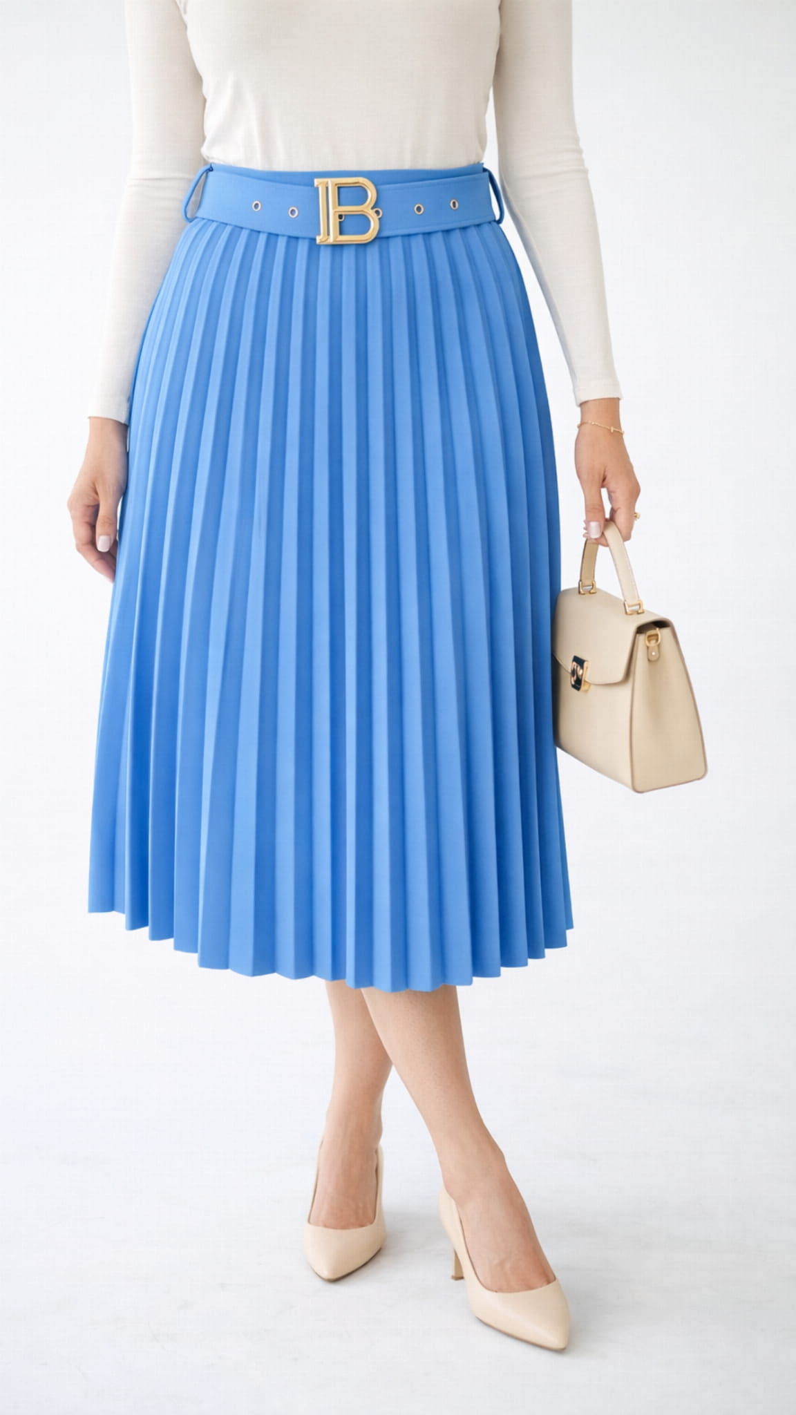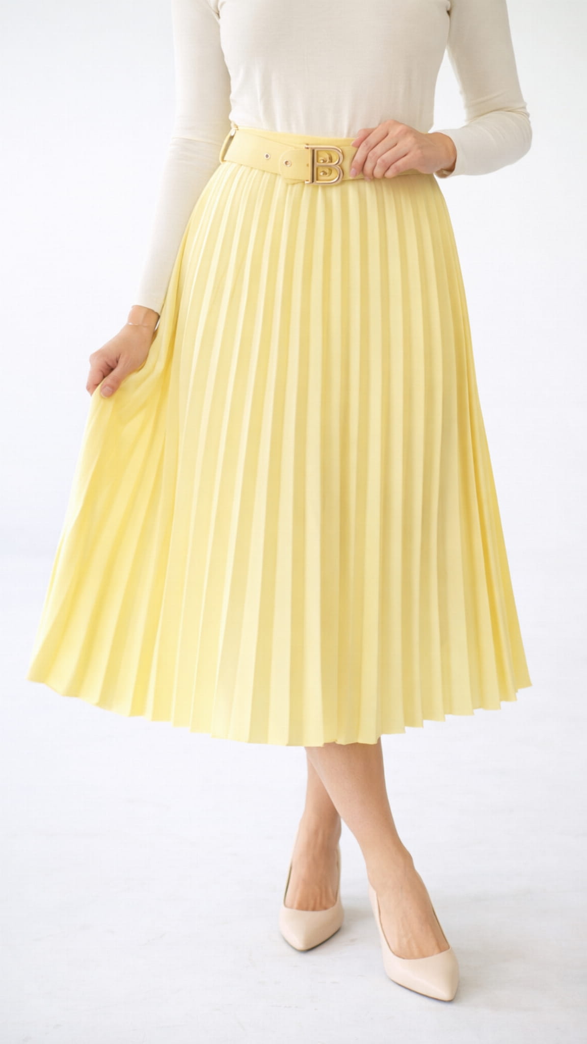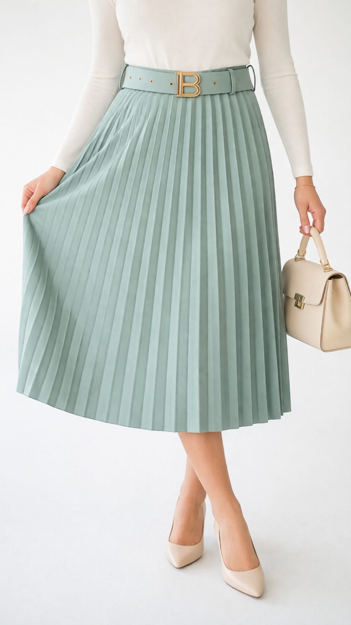 Klasyczna i ponadczasowa spódnica plisowana midi, która doskonale sprawdzi się w eleganckich i codziennych stylizacjach. Delikatne plisy nadają jej lekkości i sprawiają, że pięknie układa się w ruchu, podkreślając kobiecy charakter stylizacji.