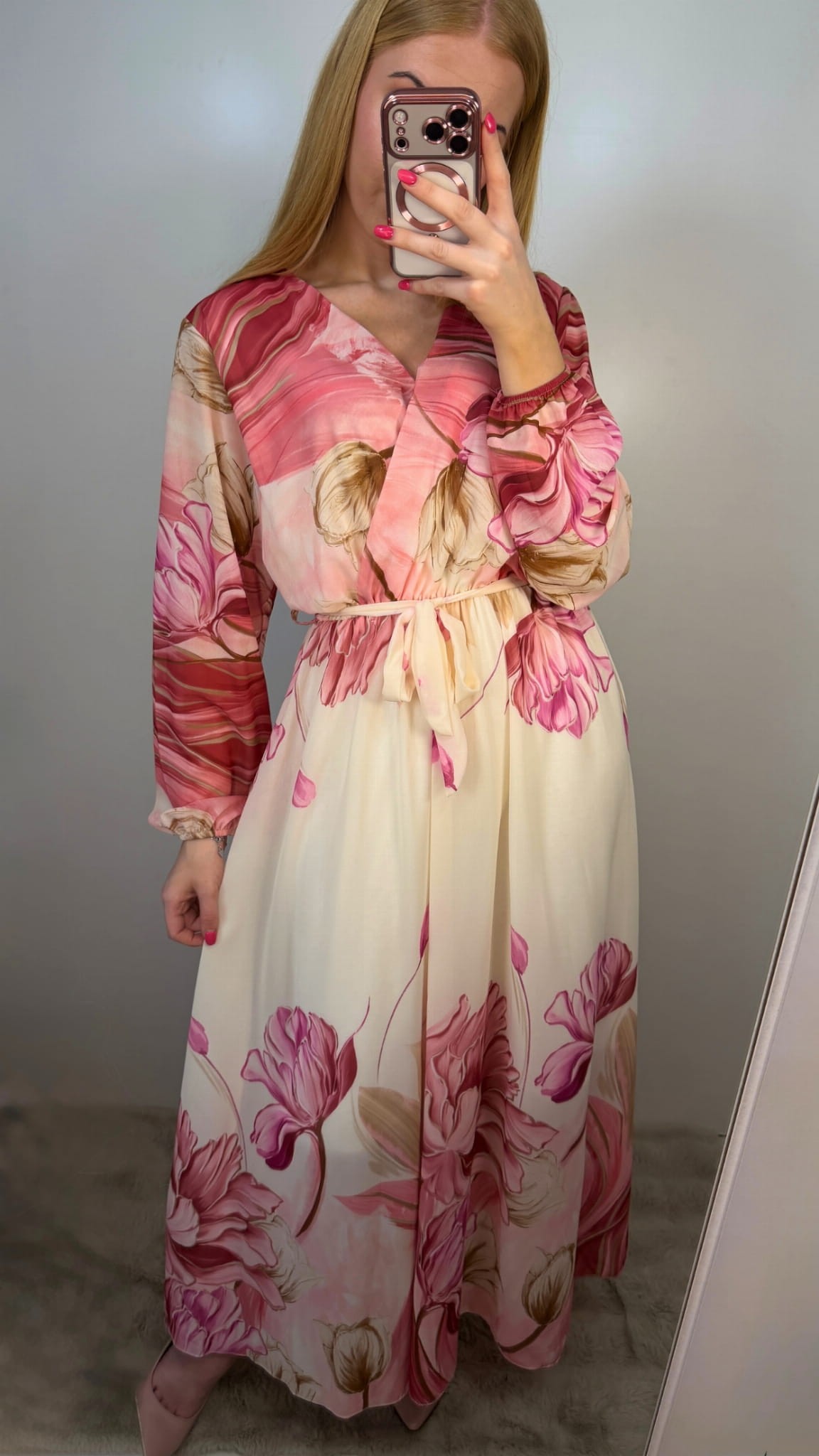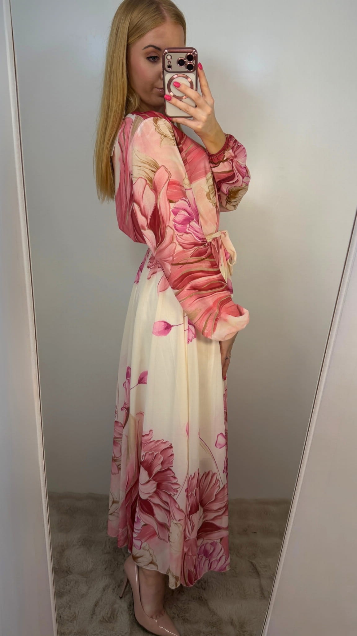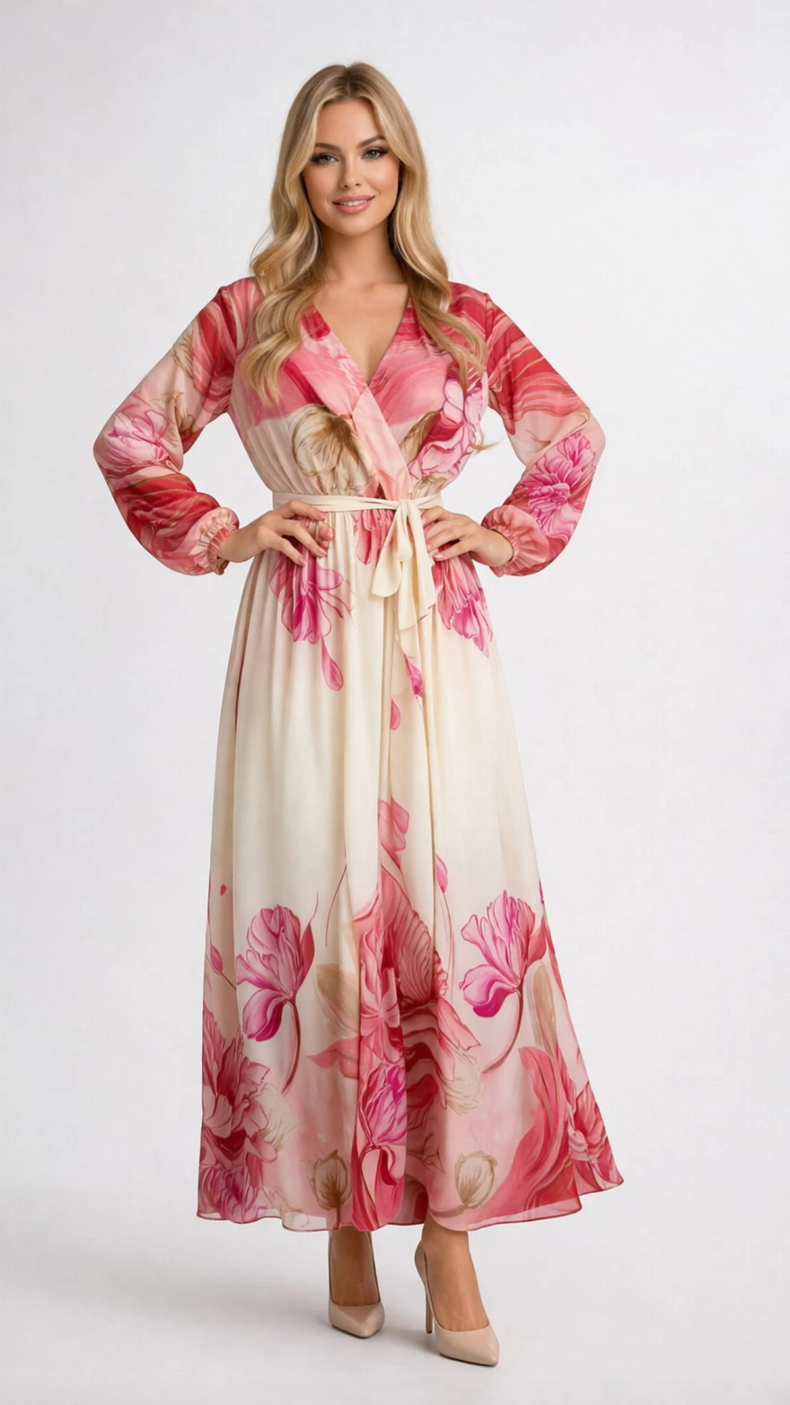 Zjawiskowa i niezwykle kobieca sukienka maxi w kwiatowy wzór, która przyciąga uwagę swoim romantycznym designem i lekkim, zwiewnym materiałem. Idealna na wiosnę, lato oraz wyjątkowe okazje.