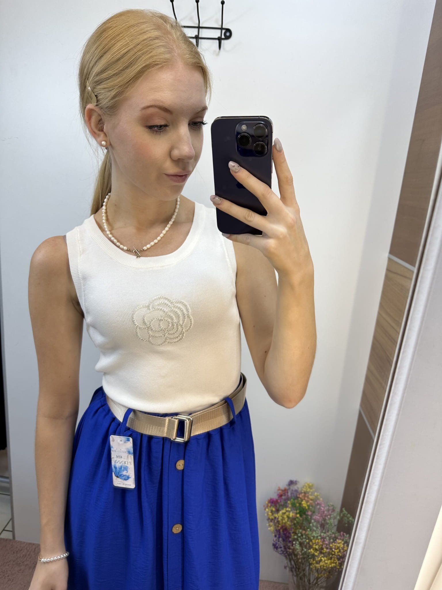 Biały top z różą